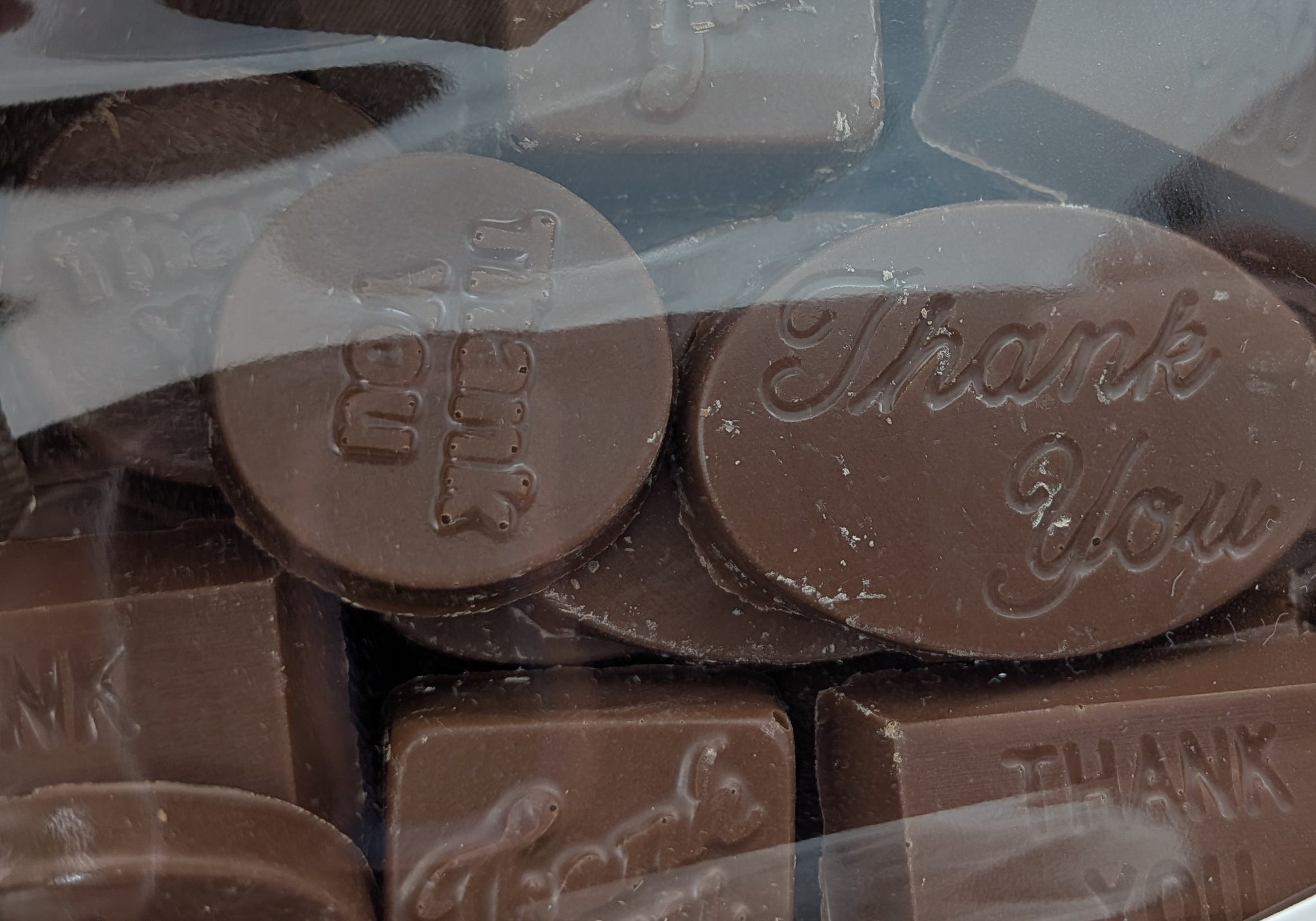– Sold Out- 100g box of chocolate THANK YOU shapes - includes custom labelling