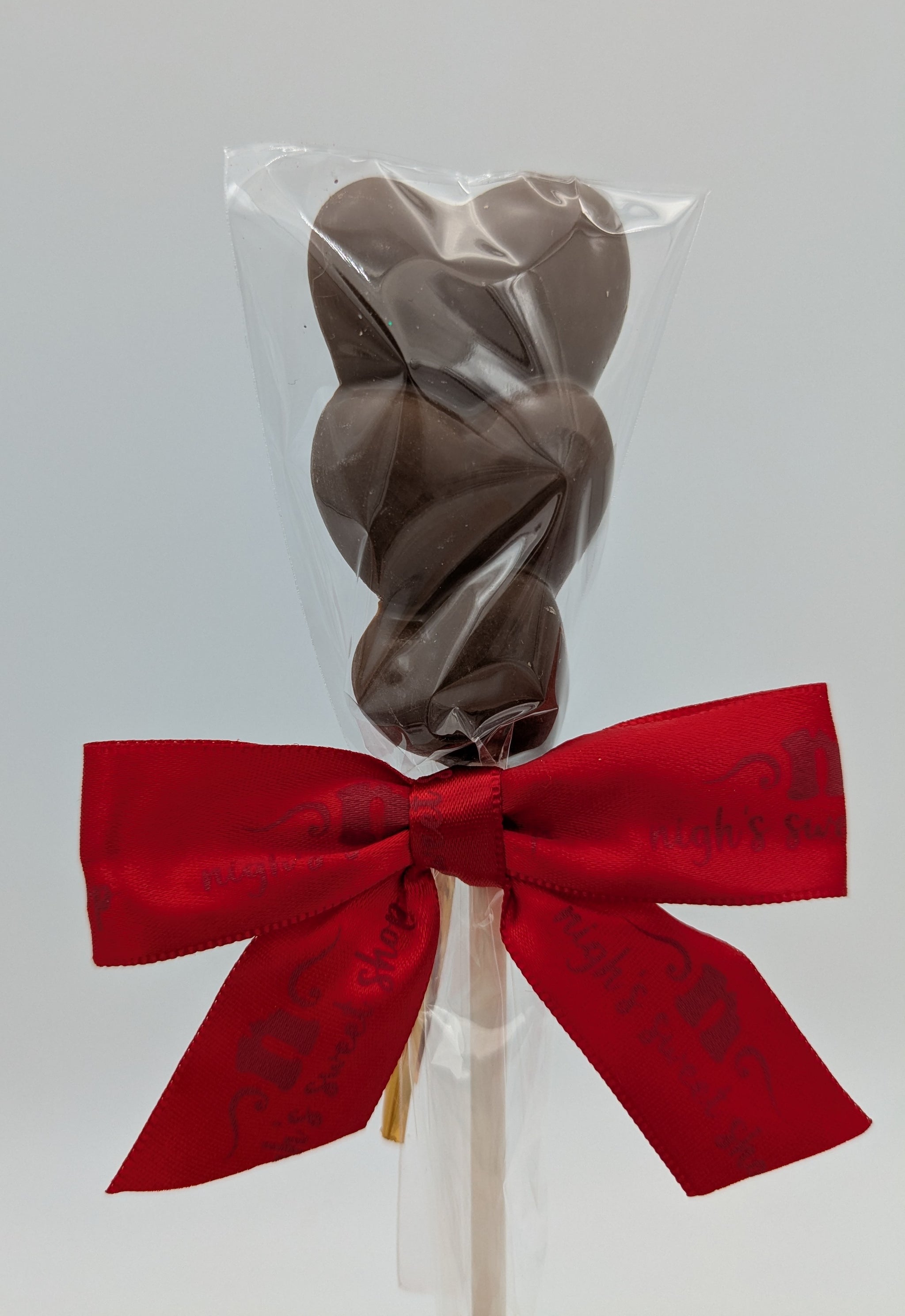 Show the love with this sweet little triple heart solid chocolate sucker!