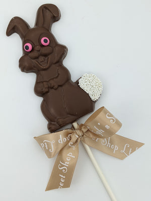 Fill Easter baskets with this funny-faced milk chocolate bunny sucker.